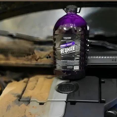 VINTEX Alumax é um desincrustante de caráter ácido, desenvolvido para limpeza de rodas, chassis, motores, baús de alumínio, carrocerias de inox e madeira. É um produto concentrado e econômico em seu uso, atuando na sujeira e retirando toda a camada superficial aderida.
