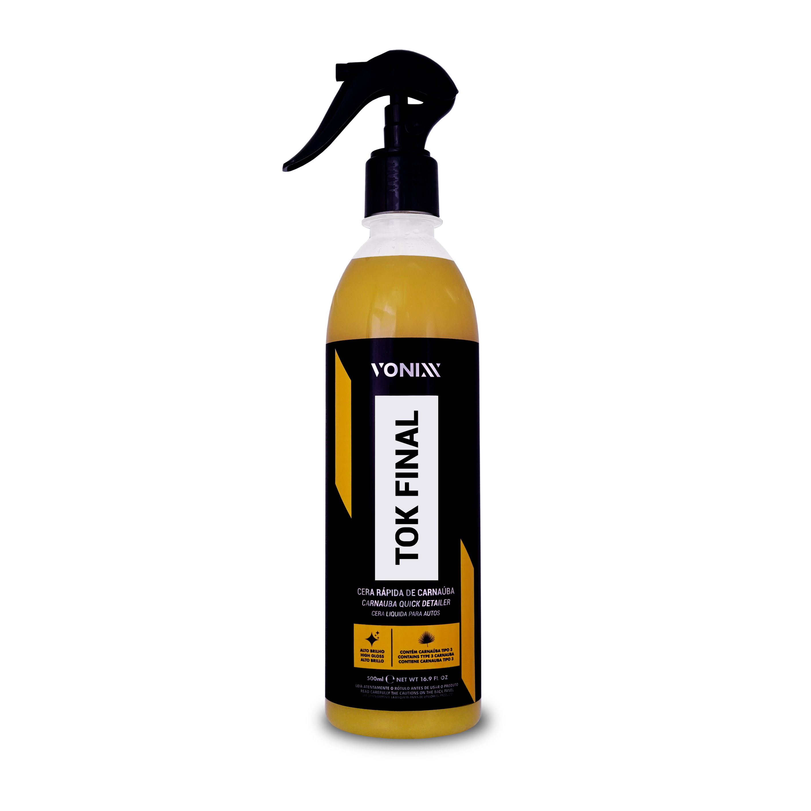 Tok Final foi desenvolvida com a mais pura cera de carnaúba cearense e polímeros de última geração, que potegem e realçam o brilho de pintura automotivas. É ideal para ser usada após a lavagem e na manutenção da proteçao da pintura do veículo entre os enceramentos. Pode ser aplicada em toda a parte do veículo, incluindo vidros, para-choques e borrachas.