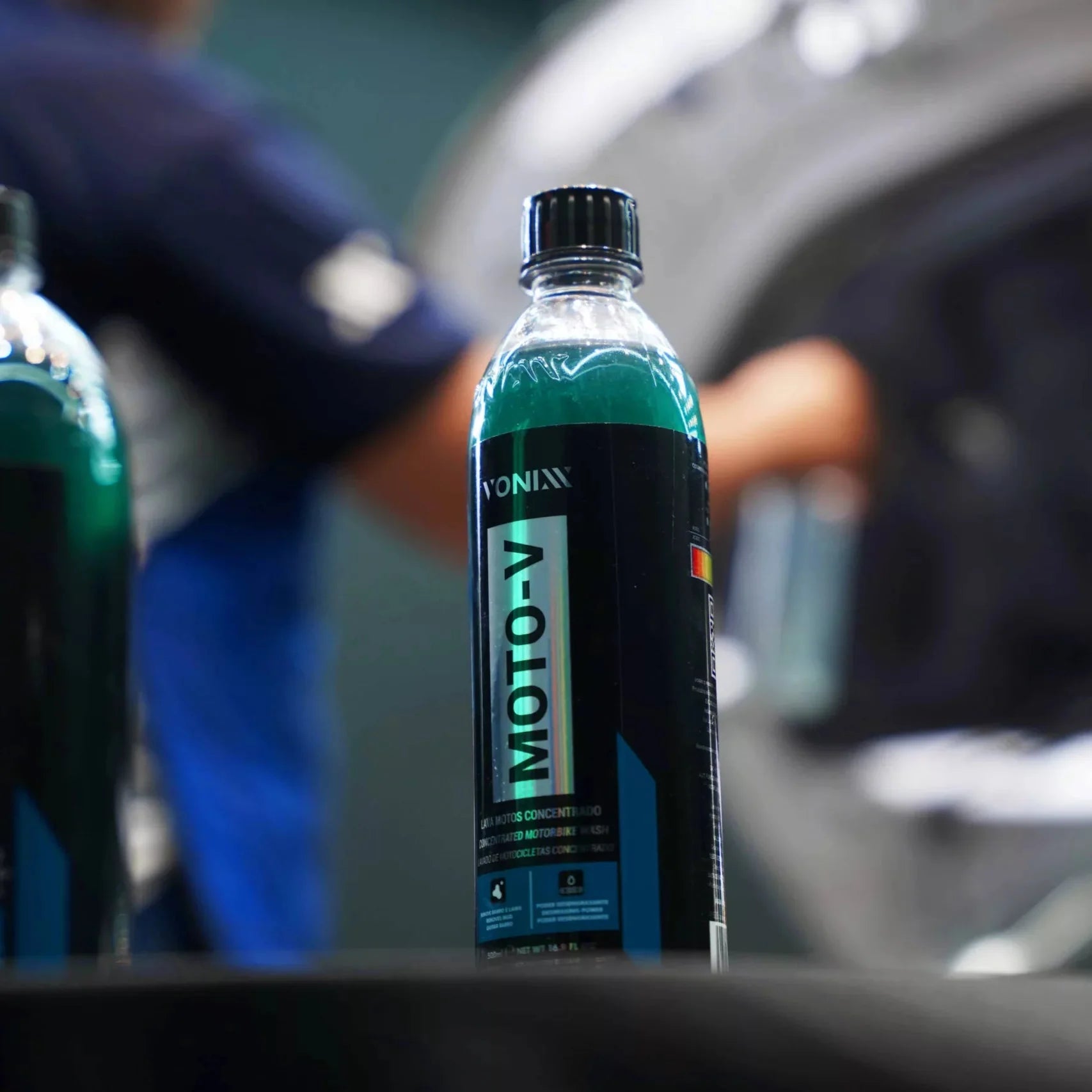 MOTO-V é um lava-motos, desenvolvido para limpeza de alta eficiência. Sua formulação equilibrada permite uso, sem agredir, em todas as partes da motocicleta, seja motor, pintura, metais ou plásticos. As possíveis diluições do produto proporcionam ao mesmo a remoção dos mais diversos tipos de sujeira, como barro, lama, graxa e óleo.