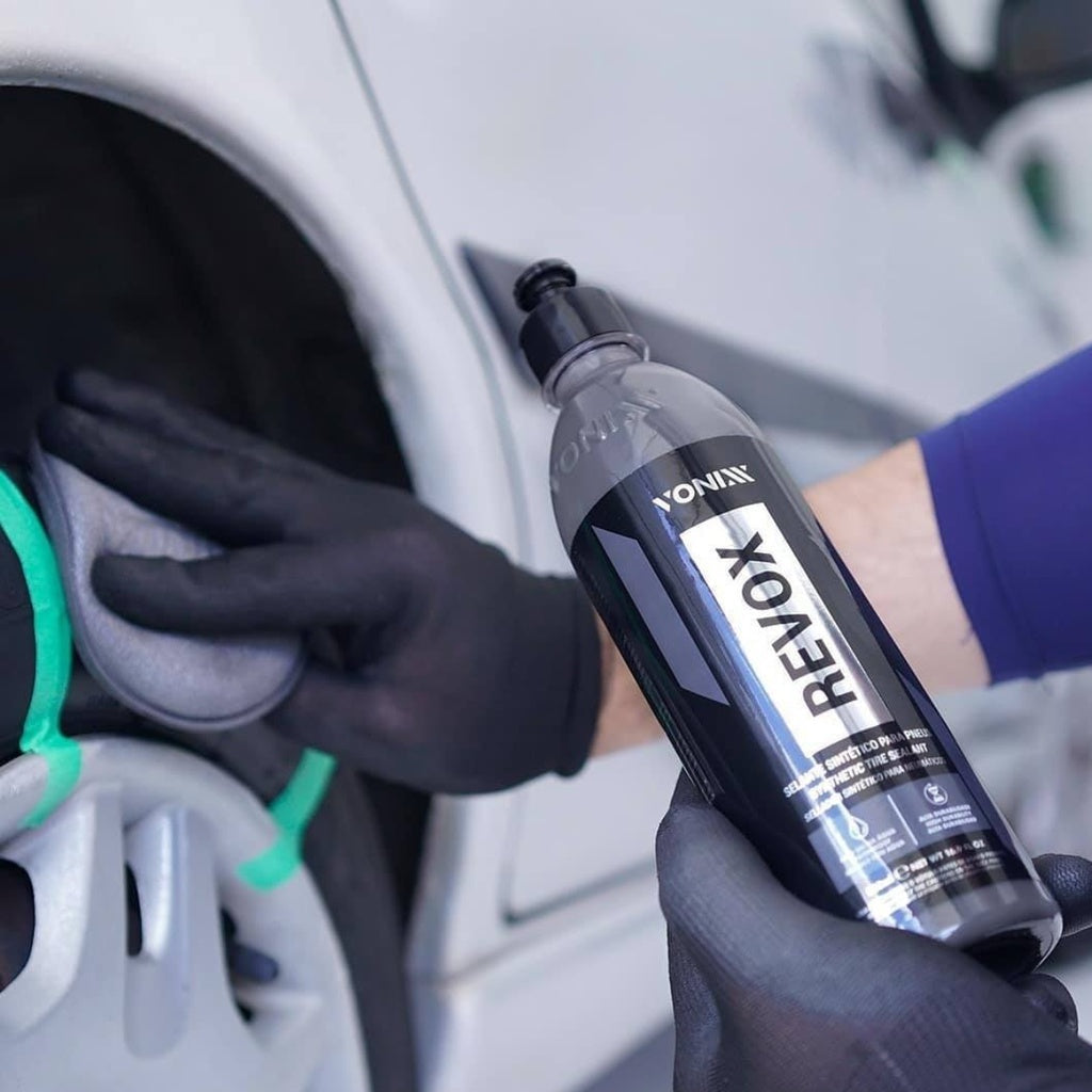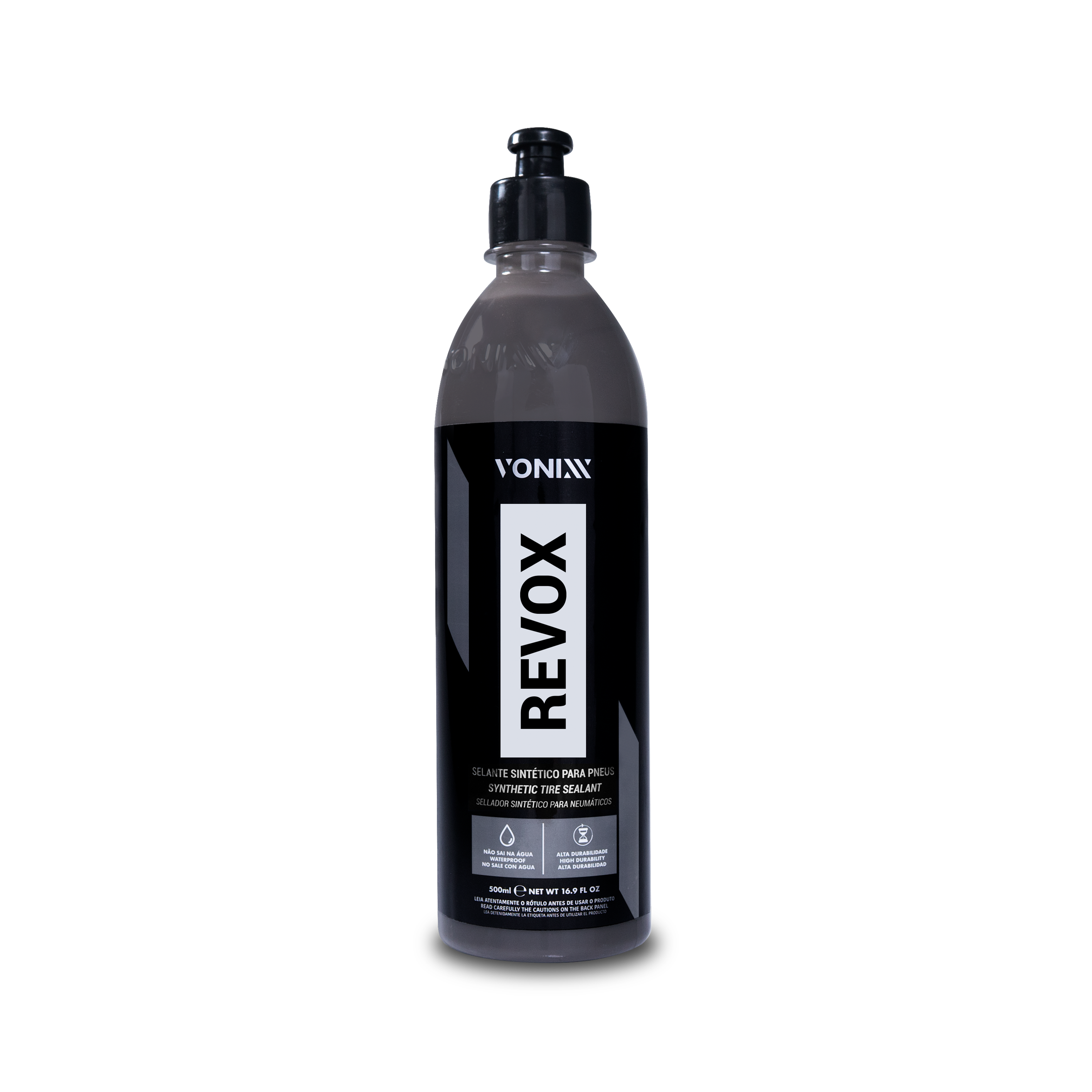 REVOX é um selante sintético para pneus, formulado para proteger, dar brilho e renovar o seu aspecto, além de promover total hidrorrepelência. Sua fórmula exclusiva é livre de solventes, ecologicamente correta e não inflamável. REVOX é extremamente resistente à lama e chuva, deixando o pneu limpo por mais tempo.