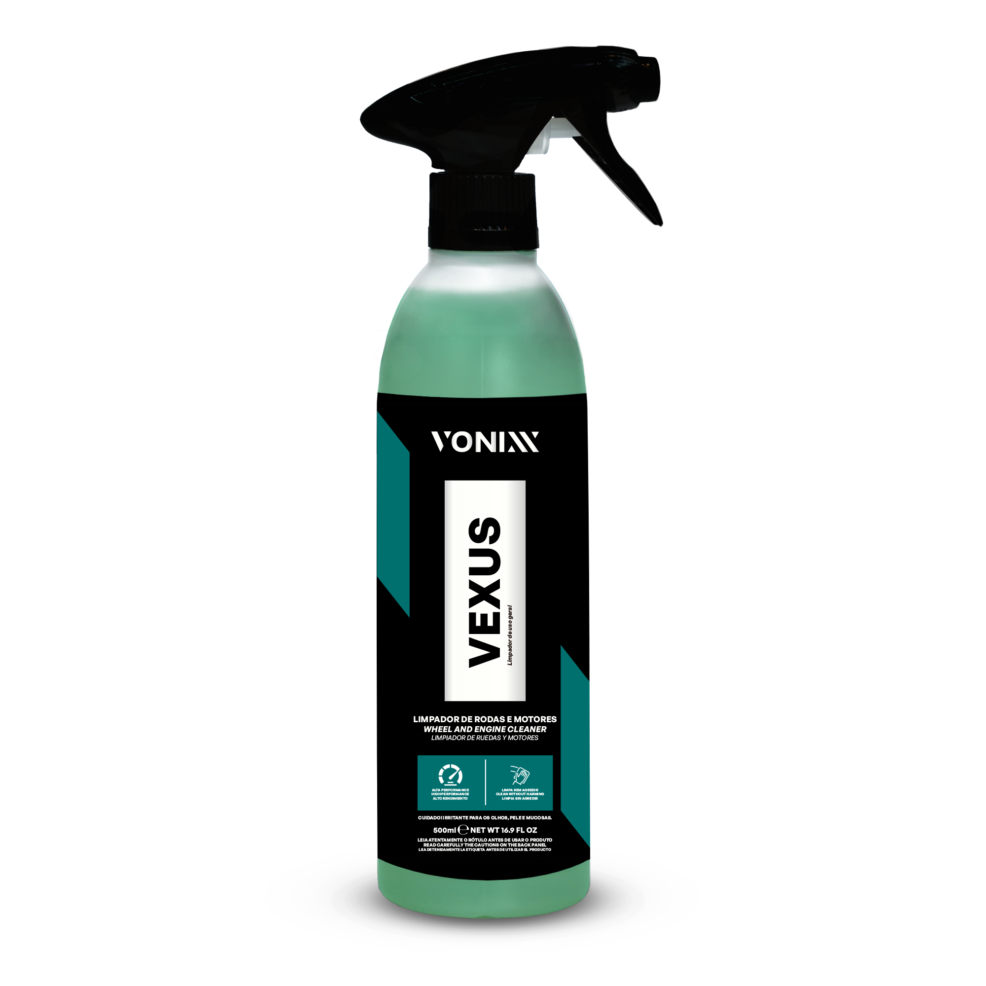 VEXUS é um limpador de alta performance, desenvolvido especialmente para limpeza de rodas e motores. O produto age na remoção da sujeira sem agredir as rodas e as partes do motor, seja plástico, pintura, borracha ou metal.